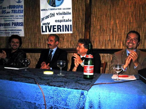 Invece chi amministra attualmente, a giudicare dai risultati,non può certo dire di aver raggiunto gli obiettivi di una azienda sana. Se per cambiare la gestione della raccolta rifiuti,come dice Pinuccio,il risultato ottenuto è quello di aumentare all'utenza le tariffe del quaranta per cento, che CXXXX di vantaggio abbiamo ottenuto ? Le XXXXX le ho messe io,perchè ho saputo di virginei lettori di Vivi Telese che non gradiscono l'uso di parole che i miei e vostri e loro nipotini di tre anni usano anche a colazione,pur se quelle parole erano uscite dalla bocca di Santoro a conclusione del suo intervento qui alla Pagliarella,ed io ho avuto il torto di riportarle senza virgolette. CXE PXXXE ! Proprio mentre Pinuccio si stava "scaldando" e stava stracciando la Platea,ecco che quello che era un giustificato ritardatario, Gianni Parisi, giungere in punta di piedi ed entrare nello splendido Gazebo del Ristorante La Pagliarella, interrompendolo. Pinuccio, nonostante il bell'intervento non completato, il gruppo storico dei compagni Telesini sa chi sei e da dove vieni, e ti sosterrà unito, alla pari di Pasquale 1°, come è giusto ! L'intervento di Giovanni Parisi è stato di una semplicità e di una immediatezza già conosciuta, mi ha fatto pensare che,per fortuna,anche in un Sindacato che cambia, i valori sono gli stessi di quelli che ho vissuto trentatre anni fa nelle Officine Elettriche della BTicino di Varese,dove sono cresciuto e dove mi sono formato politicamente. Ha anche fatto sapere che le vicende Telesine sono conosciute al di fuori dei nostri confini, e che lui si è fermato a Telese,si per le Europee,ma anche per una ulteriore spinta a Giovanni Liverini, che lo ha ringraziato con la solita autorità , fermezza e umanità. Un grazie ai